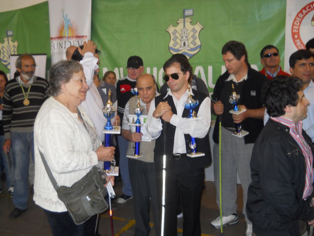 Durante la tarde del sábado 9 de noviembre se levó a cabo un match a cinco tableros entre un seleccionado de ACUA y el equipo juvenil de la Federación de Ajedrez de la Provincia de Córdoba. El detalle para destacar fue que los jóvenes locales jugaron con los ojos vendados. El match finalizó con el triunfo de FAPC por 3,5 a 1,5, pero ambos equipos recibieron diplomas y trofeos. Al cabo del encuentro, el cronista de radio Mitre les hizo un extenso reportaje. |